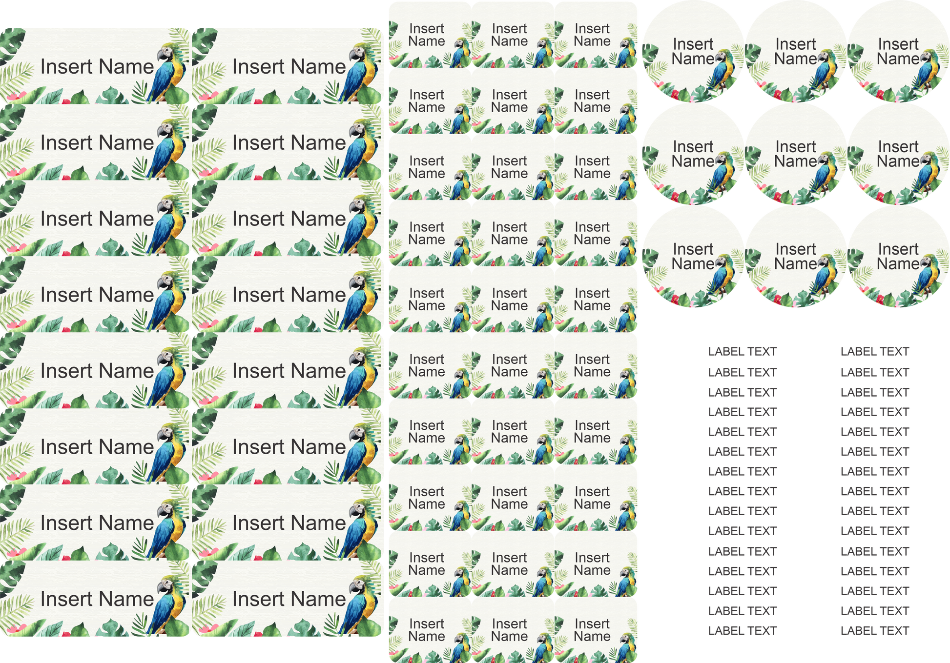 Mixed: 85 labels in total - 16 large, 30 mini, 9 round and 30 pencil labels